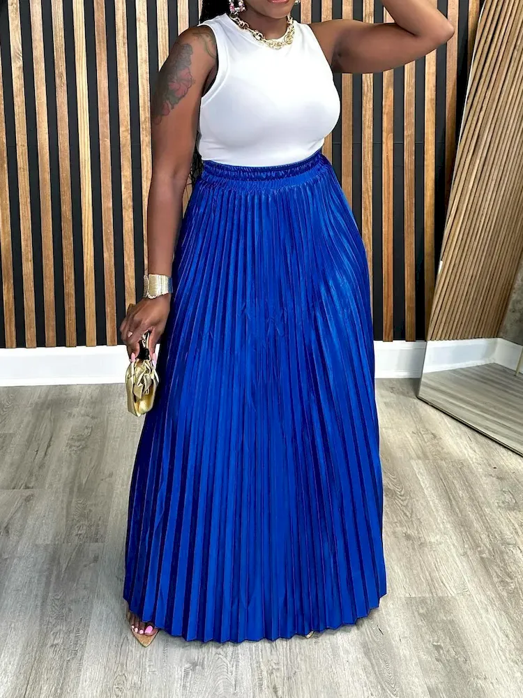 Women Fashion Casual Loose Plus Size Pleated Skirt
