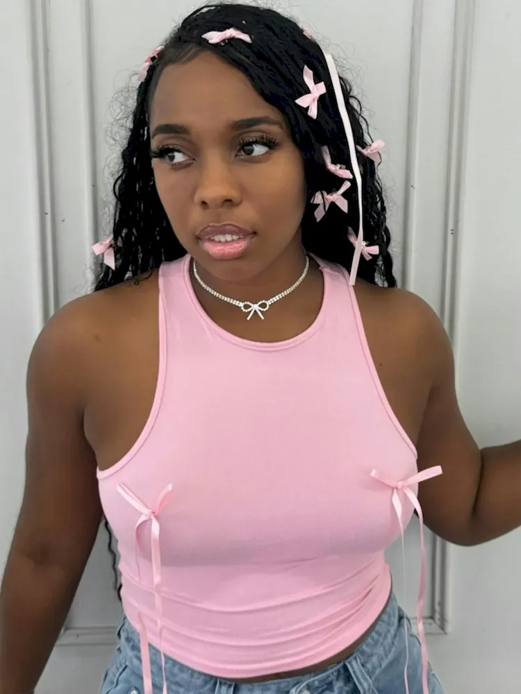 Women Fashion Sexy Solid Color Bowknot Slim-Fit Tank Top