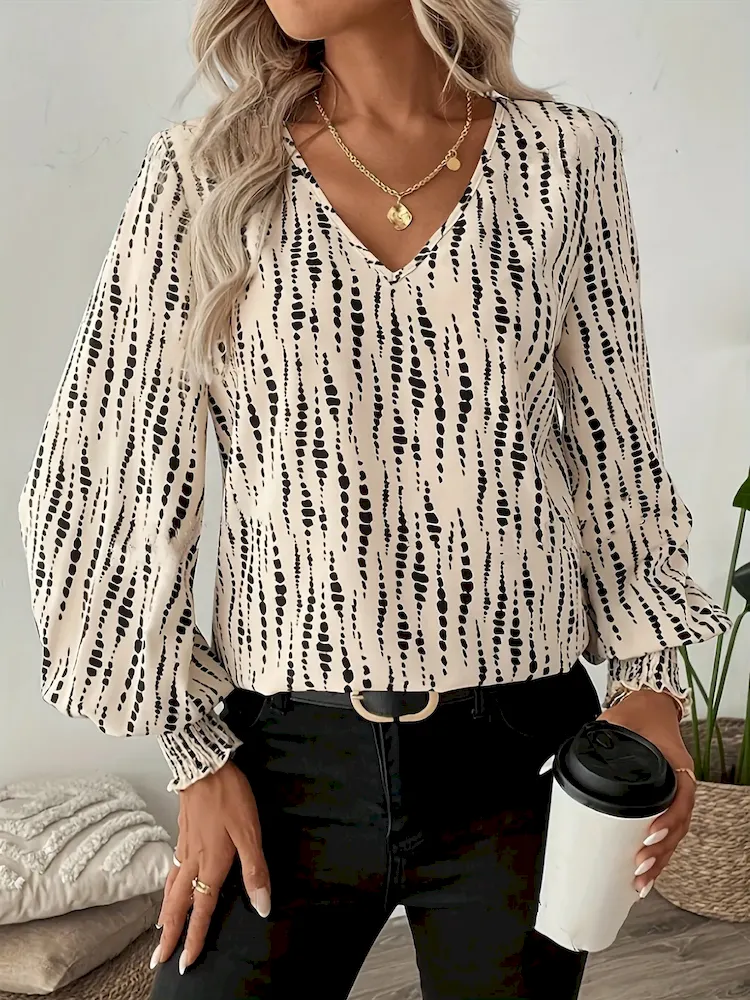 Women Fashion V-Neck Elegant Long Sleeve Shirt